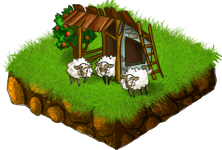 - Овчарня, доступна с 10 уровня, стоимость 60 Монет. Сажаете овец, стоимость овцы 20 Монет., корм получается из ячменя, получаете продукт молоко овцы, продать можно в лавку. Доход с полной овчарни 36 Монет. за 60 сборов продукции.